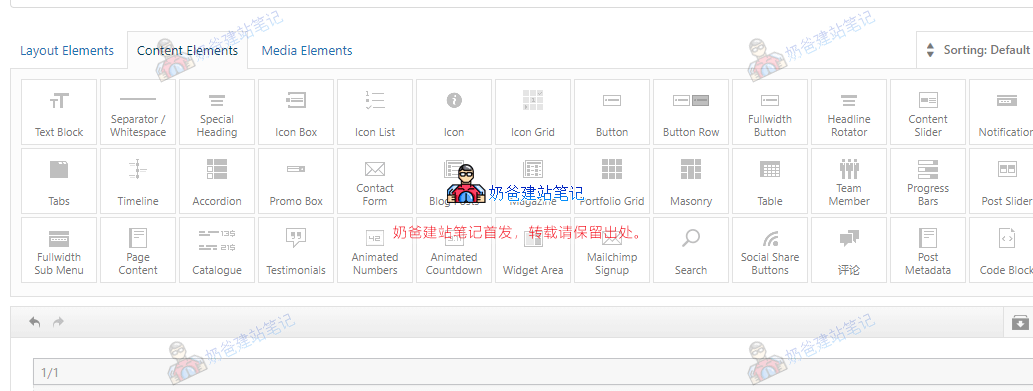 - 列,滑块,按钮,库,团队,选项卡,Toogles,手风琴,定价和数据表,号召性用语按钮,推荐书等等。(为避免混淆:这是一个内容编辑器。页眉和页脚不是通过这种方式管理的)