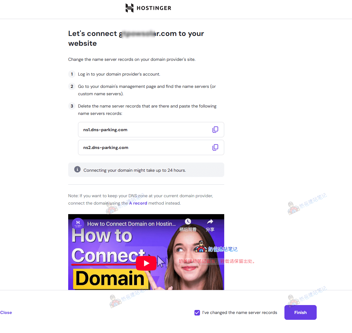 这个帮助是让你直接把域名DNS改为Hostinger的,对于新手来说改DNS服务器只需要操作一次,后面所有解析Hostinger都会帮你处理好,推荐修改。