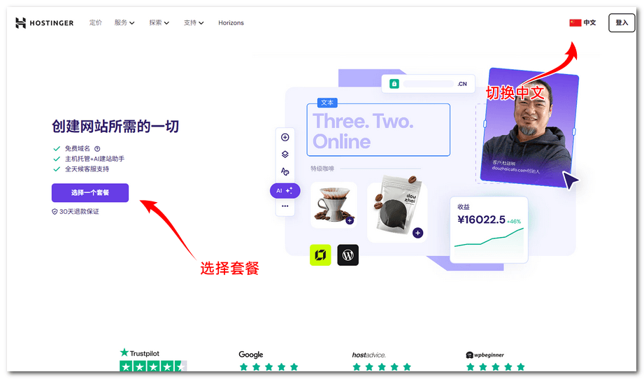 首先,点击下面的按钮进入Hostinger官网。(特别提示,国内访问Hostinger官网速度不快,建议使用代理加速器访问。