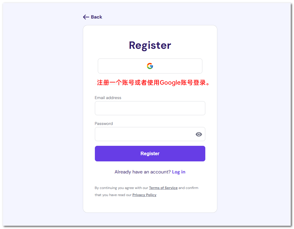 选择好购买时长之后点击继续按钮。会出现账号注册或者账号登录界面。