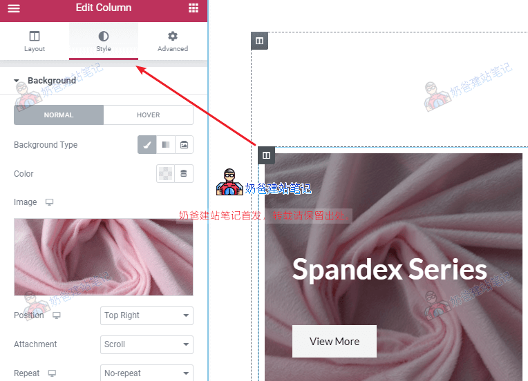上图中,我们点击图片,可以看到左边导航栏没有任何变化,这种情况是因为这个地方并不是添加的Image图片功能,而是使用的column背景。