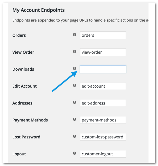 如何把“下载页面”从WooCommerce“我的账户”页面删除。